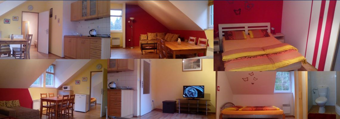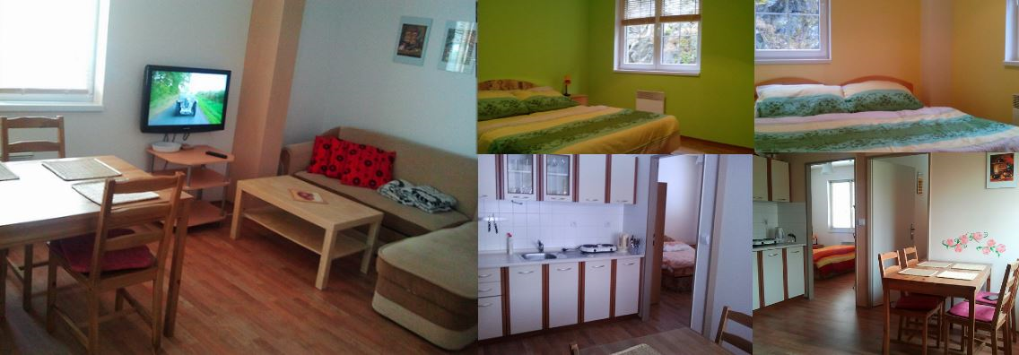 Stravování vlastní ve vybavené kuchyni nebo v okolních restauracích